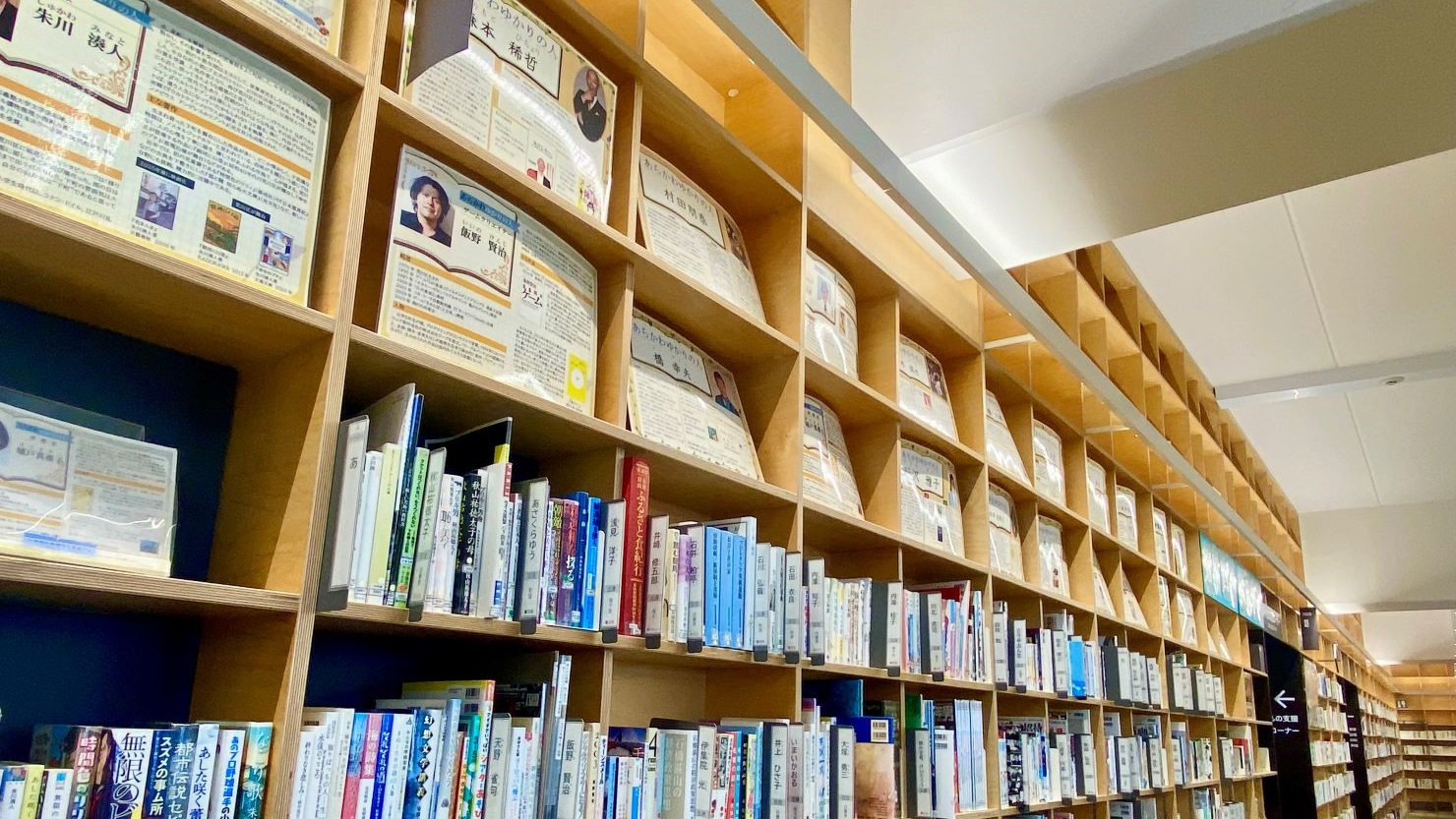 新聞の縮刷版や住宅地図などは、隣にある「地域行政コーナー」で閲覧できます。