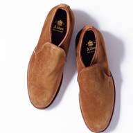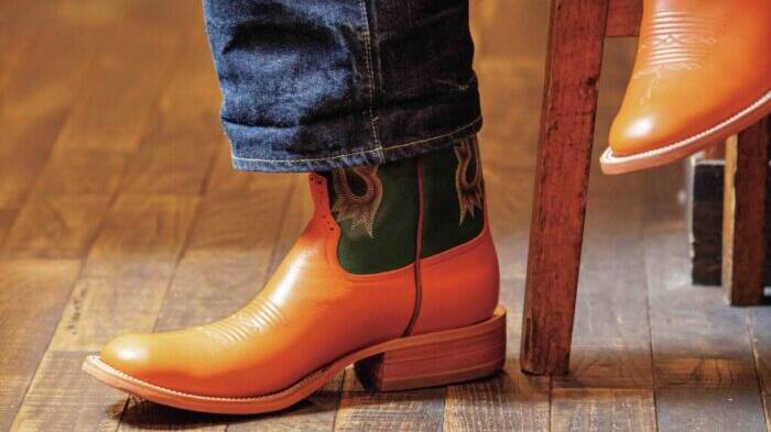 60sコロンビアのジャストサイズを発見し、愛用する高橋さん。茶芯が表れたミントコンディションのレザーの風合いが抜群で、ややロングポイントのエリの形状など、現行とは異なるディテールが見所。ラビットフットのアクセサリー使いも◎。