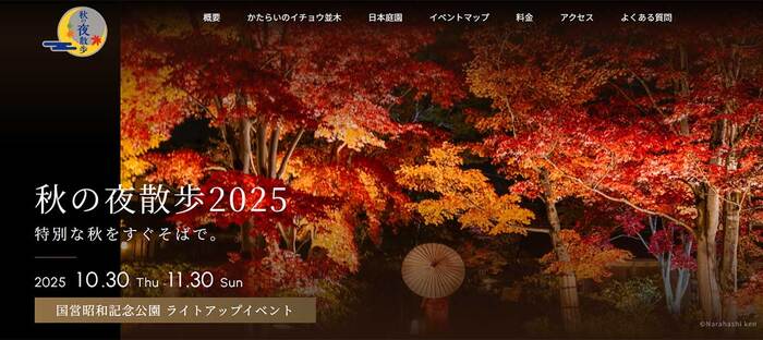「秋の夜散歩2025」公式サイト( https://www.showakinen-koen.jp/autumn-night-walk/ )