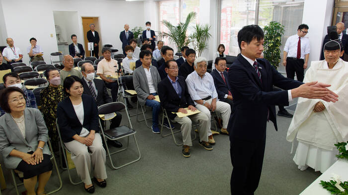 古澤文夫後援会会長のあいさつ後、伊崎博幸市議が登壇。丸山氏について「常に冷静沈着で言葉を選びながら、胸には誰よりも熱い上越愛が眠っている」と語り、応援を決めた理由を「丸山さんの考えと自分の考えがリンクしている。子育て世代の声が分かる、市街から外れた方たちの声を取り入れまちづくりをしていく丸山さんを応援したい」と話した。
