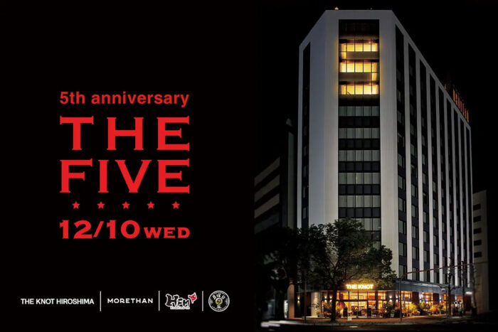 広島市中区にあるライフスタイルホテル「THE KNOT HIROSHIMA(ザ ノット 広島)」は、開業5周年を記念した特別イベント「THE FIVE」を、2025年12月10日(水)に開催します。