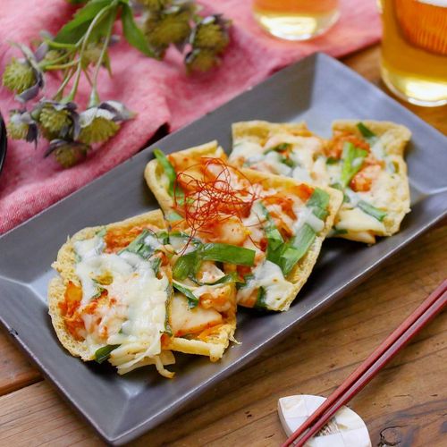 具材はお好みにアレンジしてくださいね。火が通りにくい具材の場合は1度加熱してから油揚げにのせると良いですよ。