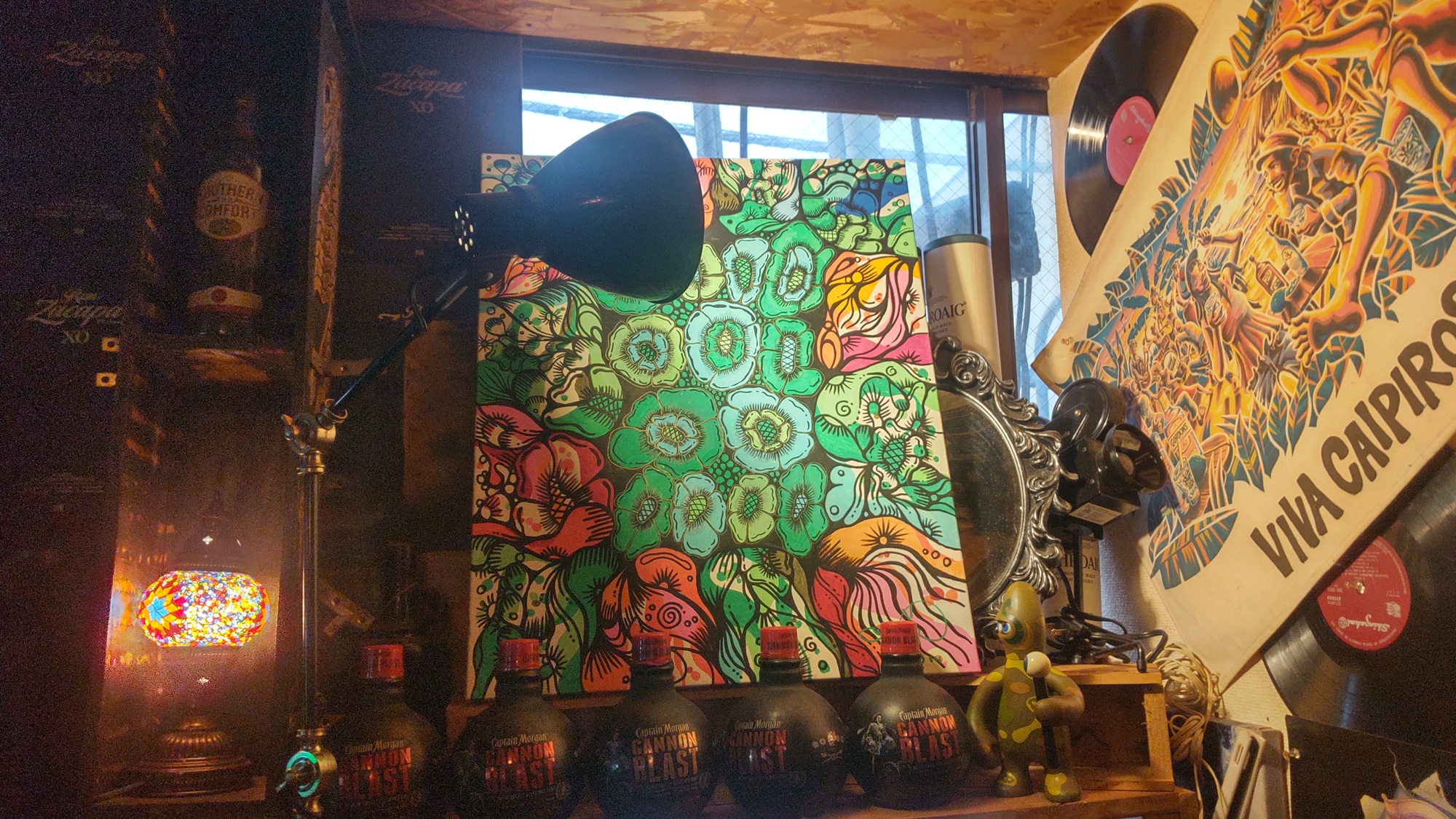 この作品は鎌倉在住のKENさんというアーティストによるもので、お店でライブペイントを行った時の作品だそうです。