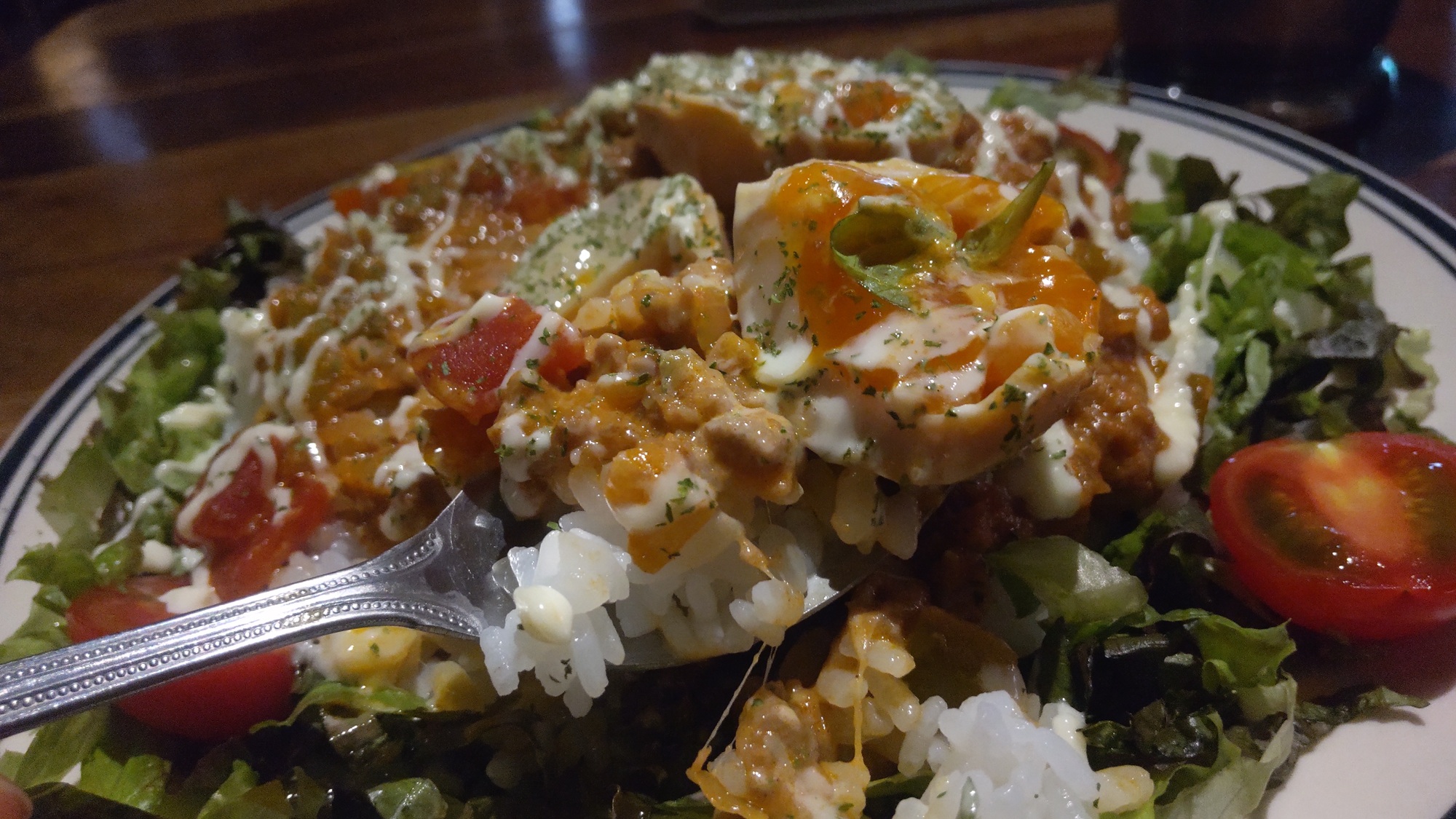 ご飯、挽肉、チリパウダーのピリ辛加減、マヨネーズのコク、全てが絶妙に絡み合っていました。飲み込むのが惜しいほど美味しかったです。
