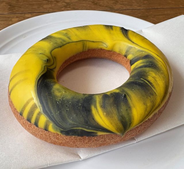阪神梅田本店限定「虎ドーナツ」は、アメリカで話題のギャラクシードーナツを、阪神タイガースをイメージした虎柄にアレンジ。黄色と黒のマーブル模様がインパクト抜群で、子どもから大人まで楽しめる一品です。