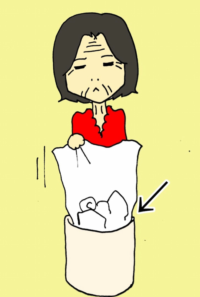 ゴミ箱とゴミ袋の隙間に隠していたことも。隠した場所を覚えてくれていれば何も問題ないのですが、忘れてしまうのが認知症なので……困ったものです。