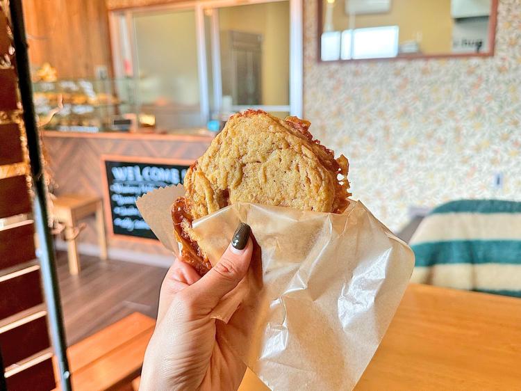 柔らかいクッキーの中に、自家製トフィー(キャラメルのような濃厚な甘さ)が入っていて、あたためて提供してくれるため、やわらかい食感がたまらない美味しさです。