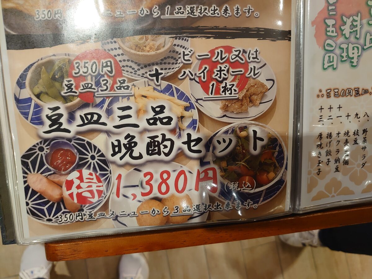 ここから3品選べてビールかハイボールが一杯、付いてきます!