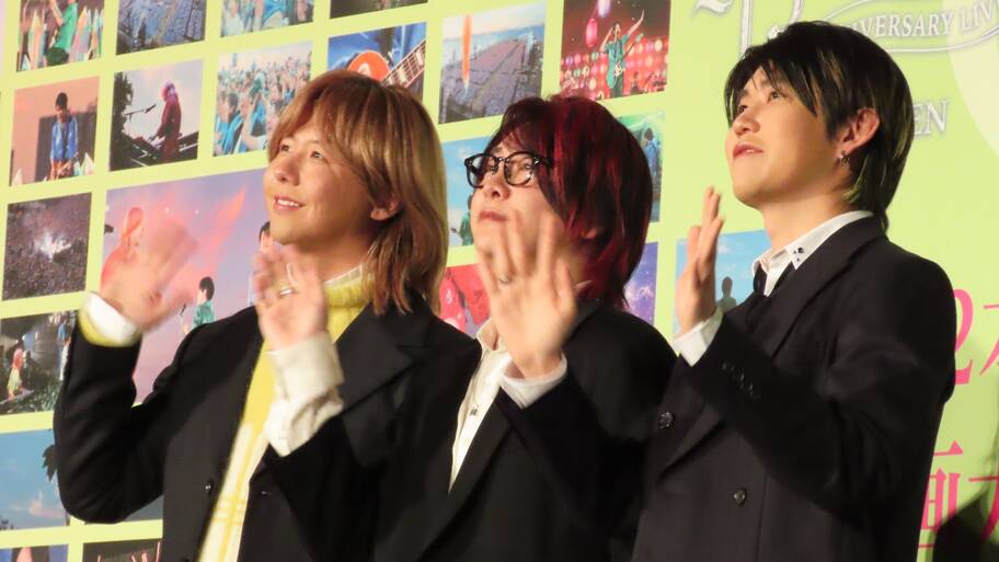 メンバーの大森元貴さん、若井滉斗さん、藤澤涼架さんが登壇。