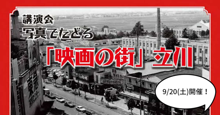 かつて「映画の街」とよばれた立川の歴史をたどる。9/20(土)に柴崎学習館で「講演会 写真でたどる『映画の街』立川」が開催。8/12(火)8:30~申込開始