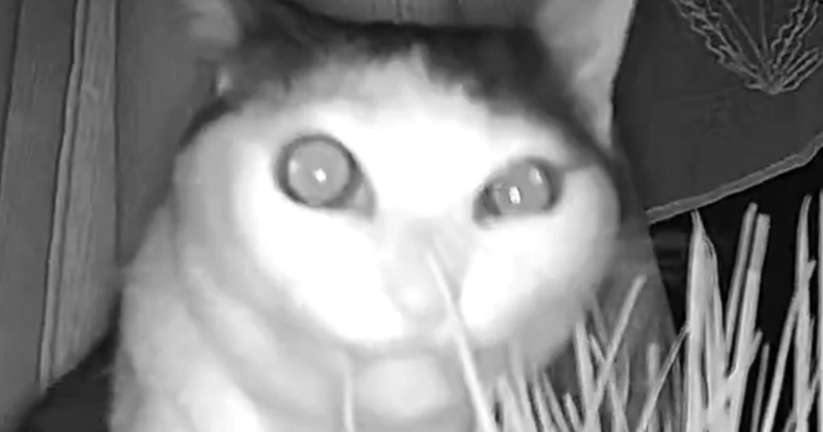 ゆにちゃんは暗闇の中で、新鮮な猫草をもぐもぐ。ひとりでのんびりと夜の猫草タイムを満喫していたようです。途中、見守りカメラが動いていることに気付いたゆにちゃんでしたが、猫草は止まらず。気にせずモグモグしていたみたいです。寂しくはなさそうなので、ひと安心ですね!