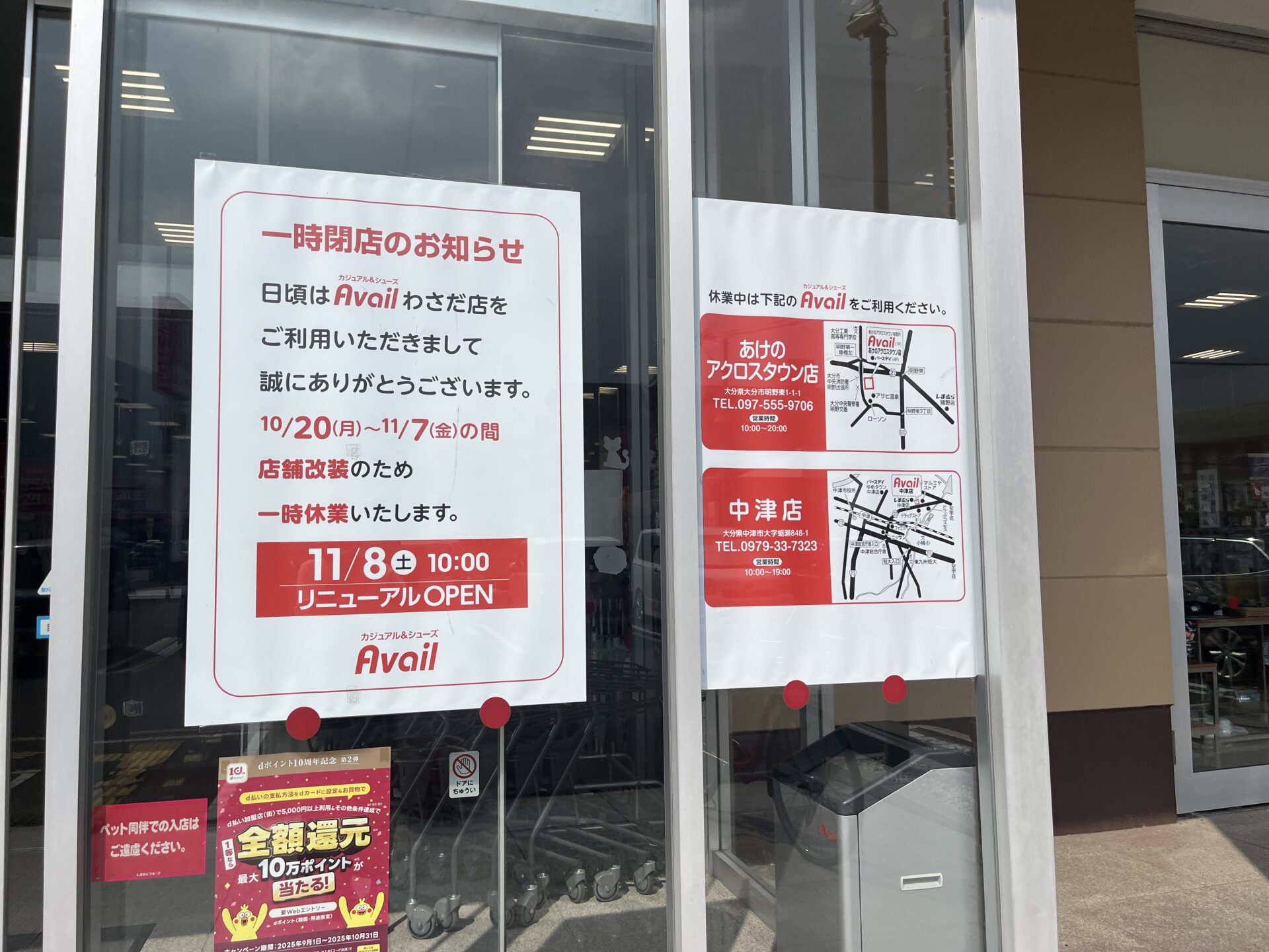 『アベイル わさだ店』は2025年10月20日〜11月7日の間、一時休業だそうです。