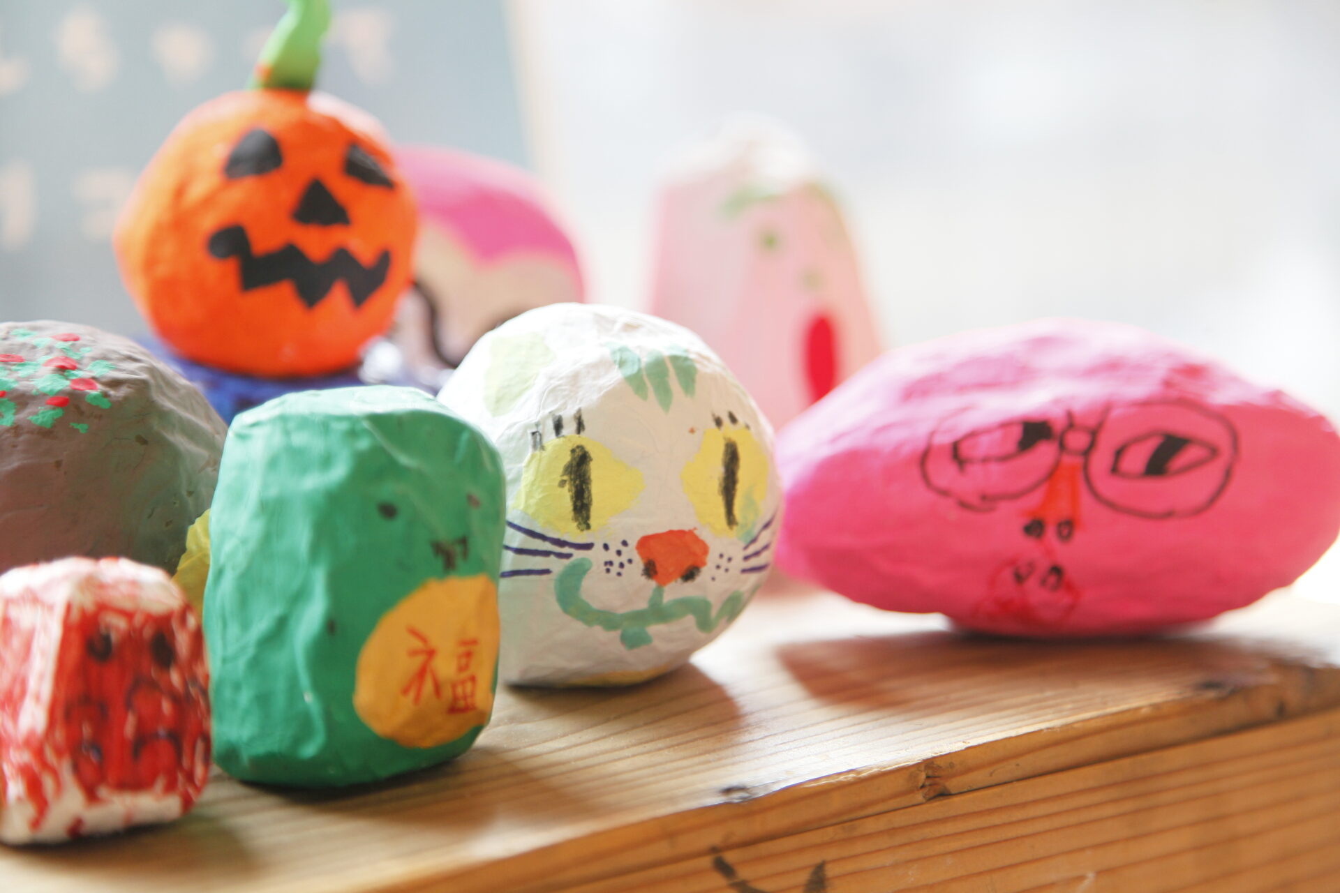 利用者の作業のようすを、一般のかたにも気軽に見てもらえるように開かれています。ここでは、商品の一つとして「なんちゃってハリコ」の制作もおこなっていて、訪れた人がものづくりの現場を間近で楽しむことができます。