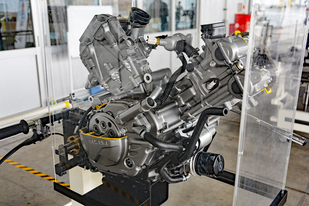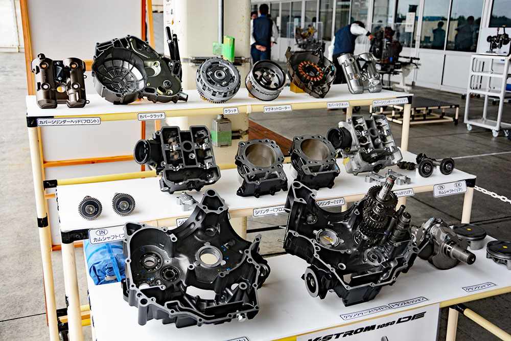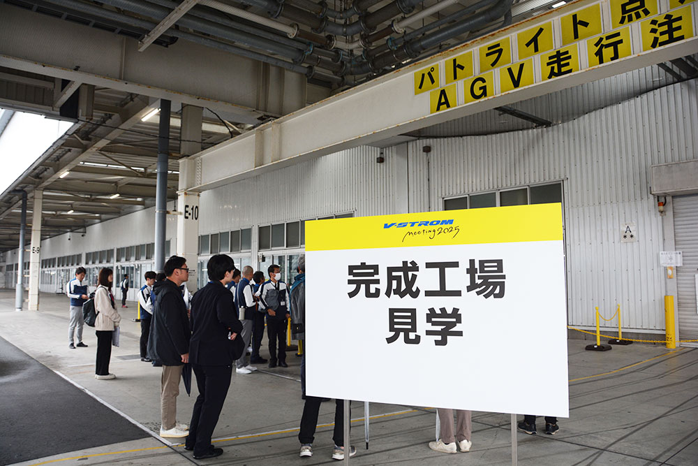 今回のイベントの見どころのひとつは、普段は見ることのできない工場見学です。工場内の「第1ライン」「第2ライン」の2つの製造ラインが公開され、この日は、第1ラインではVストローム800DE、第2ラインではVストローム800が製造されていました。参加者は工場スタッフの説明を聞きながら、車両の組み立て過程を見学。Vストロームが完成していくさまを目の当たりにしました。