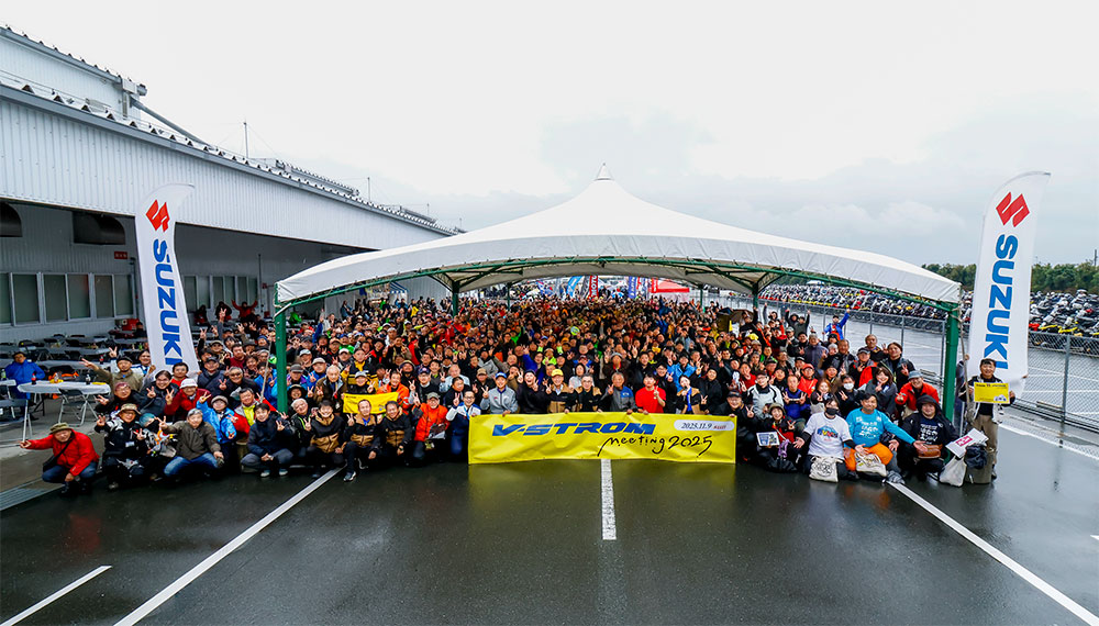 あいにくの空模様に見舞われたにもかかわらず、日本全国から大勢のVストロームファンが集結したVストロームミーティングには、参加者だけでなくスズキのスタッフの表情にも笑顔が溢れ、そしてVストローム愛が会場に満ちていました。Vストロームを生み出す浜松工場が会場となったことで、Vストロームにさらに魅了されたオーナーもいることでしょう。来年以降のイベントの発展が今から楽しみです。