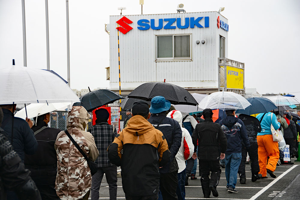 Vストロームミーティングは他の車種別イベントとは少し雰囲気が異なっていて、柔らかい感じのオーナーの方が多い気がします。それでいて、今日のような雨の日でも『絶対に行くぞ!』という熱い部分も感じるのです。今年で11回目と長く続けてきていることもあって、イベント以外でも仲間同士でミーティングが行われたりしていて、いろいろなところで輪ができているんですよね。