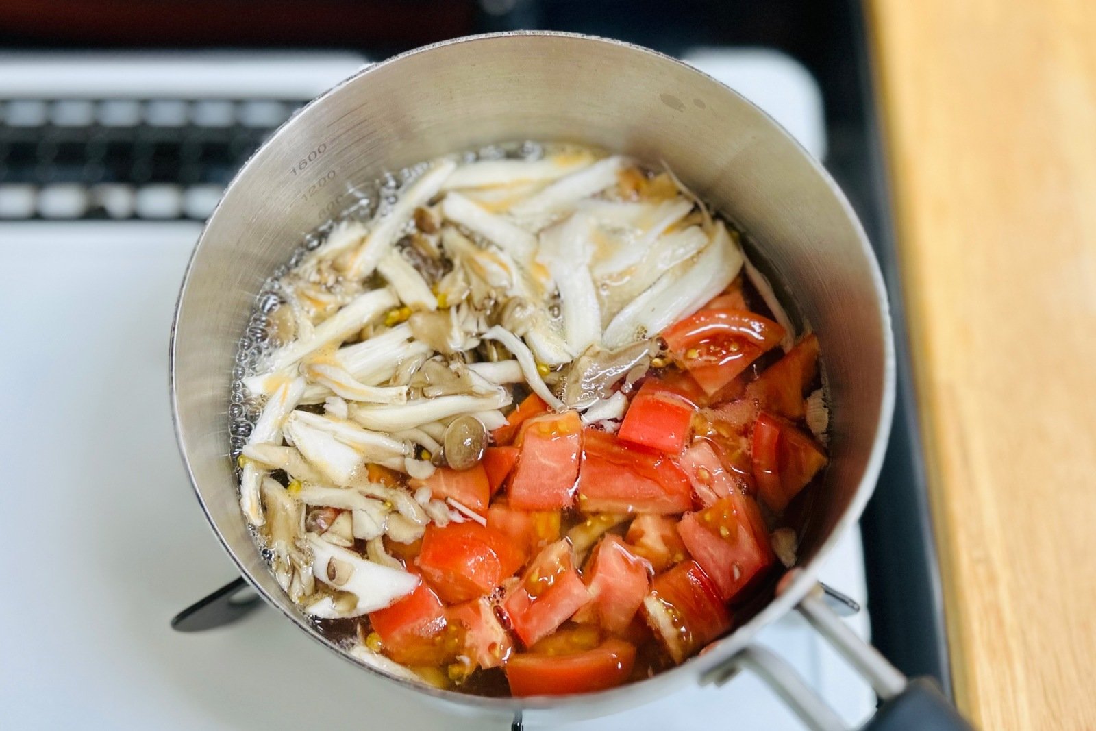 トマトの酸味ときのこのうま味成分が合わさることで、よりおいしく、体にやさしい一杯になりますよ。