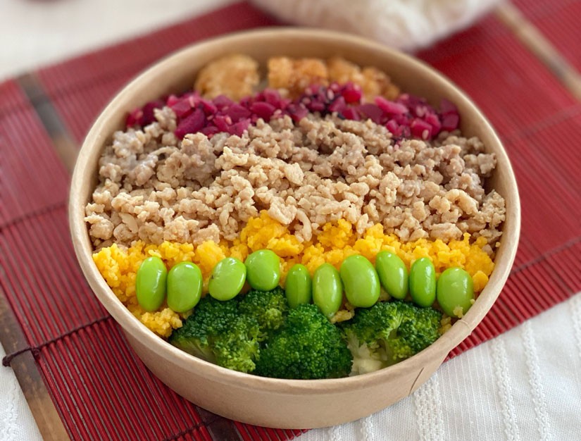 看板メニューは、マルシェで最初に販売された「レインボー弁当」。鶏そぼろ、豚そぼろ、卵そぼろなど7種のおかずが並ぶ彩り豊かで楽しい“のっけ弁”です。最後まで飽きずに食べられるとリピーターも多い人気の一品。マルシェからの常連客からは、「かわいくて楽しい」「おいしくて気持ちも明るくなるお弁当」評判なのだとか。同店のお弁当はどれも800円と手に取りやすい価格なのも嬉しいポイント。