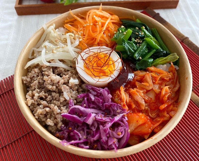 タコさんウインナーなどが可愛らしい「チキンカツ弁」(写真左)と、キムチやナムルなど7種類の具材がトッピングされている「ビビンバ弁当」(写真右)。