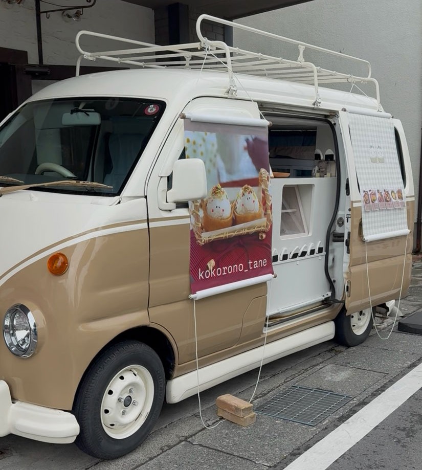 ベージュのワーゲンバスが「kokorono_tane」のキッチンカー。マルシェでの販売も継続予定。出店情報はInstagramで発信。