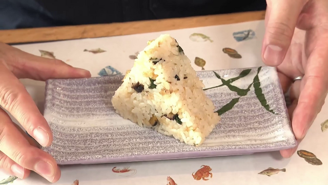 こちらは道の駅1階の物産館「おにぎり庵」で販売されている「おにぎり さざえの炊き込みご飯」