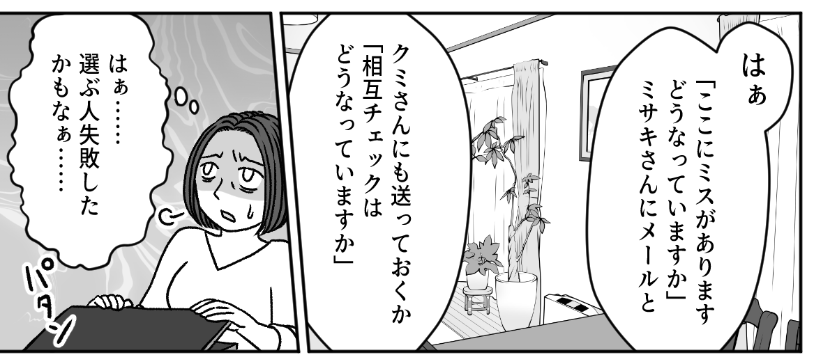 私がパートを雇った理由は、仕事量が増えてひとりでは負担が大きいからです。簡単な仕事をサポートしてもらえれば私もラクになるし、その分仕事も増やせて収入もアップ。そう考えていました。 しかし実際は、雇ったアシスタントさんはミスばかり。私のダブルチェックは必須になり、負担が減ったのか増えたのかもわかりません。それだけならまだいいのですが、ミスが重大なクレームにつながる可能性だってあります。 私はパートの人選を間違えたと思ったのですが……もしかしたら、間違っていたのは私の考え方なのかもしれません。