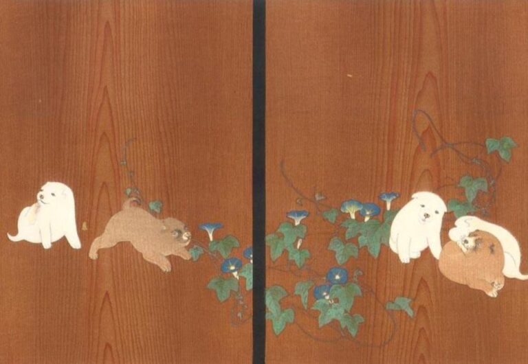 円山応挙《朝顔狗子図杉戸》