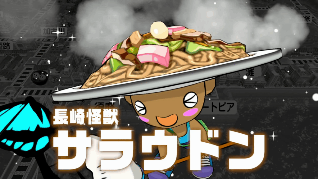 サイコロを振り、1・3・5が出た場合は 長崎 へ移動、それ以外の場合はカードがもらえる名産怪獣です。