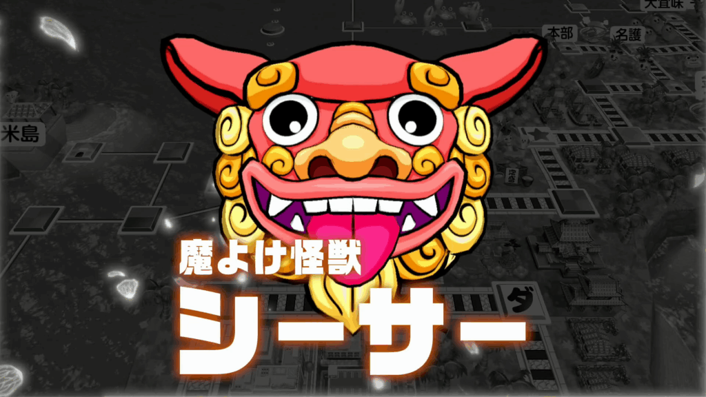 魔よけ怪獣シーサーは、那覇が目的地の際に止まると出現する名産怪獣です。