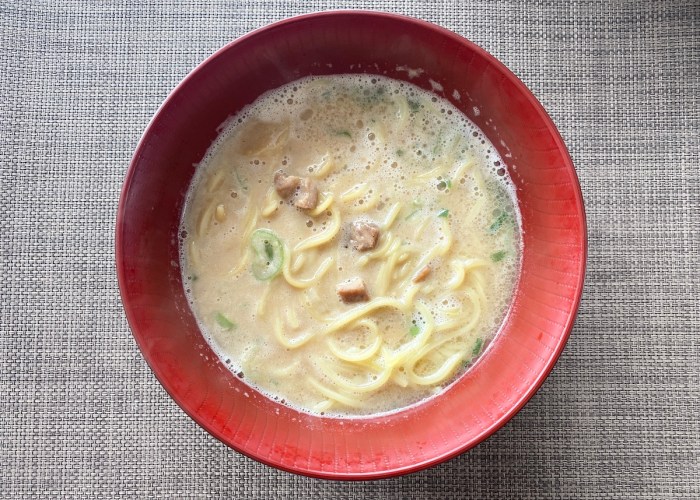 なんというか、これは夜食に合うような一杯。勝手な推測だが、レンジでも作れるところといい「どんなときでもすぐに作れて食べられる」を計算されているような感じがした。