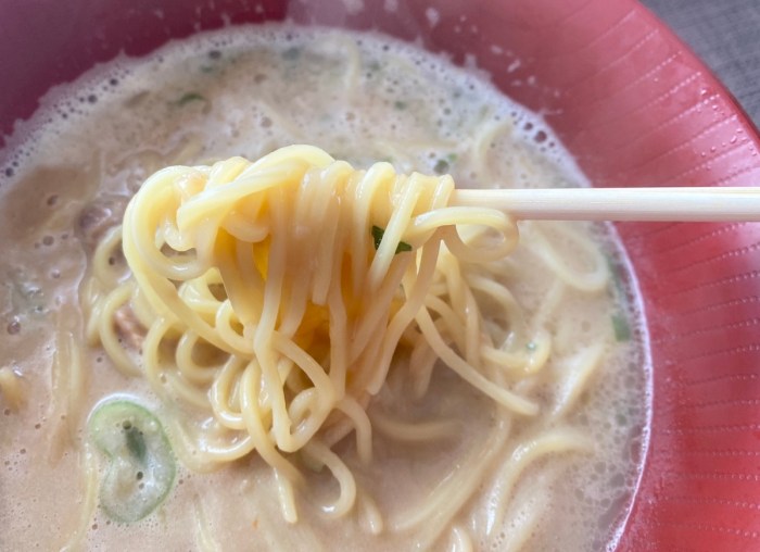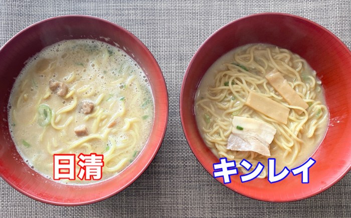 あえて短い言葉でスープを表現するなら日清が「トロッ」なら、キンレイは「ドロッ」。同じこってりというフィールドでありながら、戦い方はそれぞれによさのある別物だった。