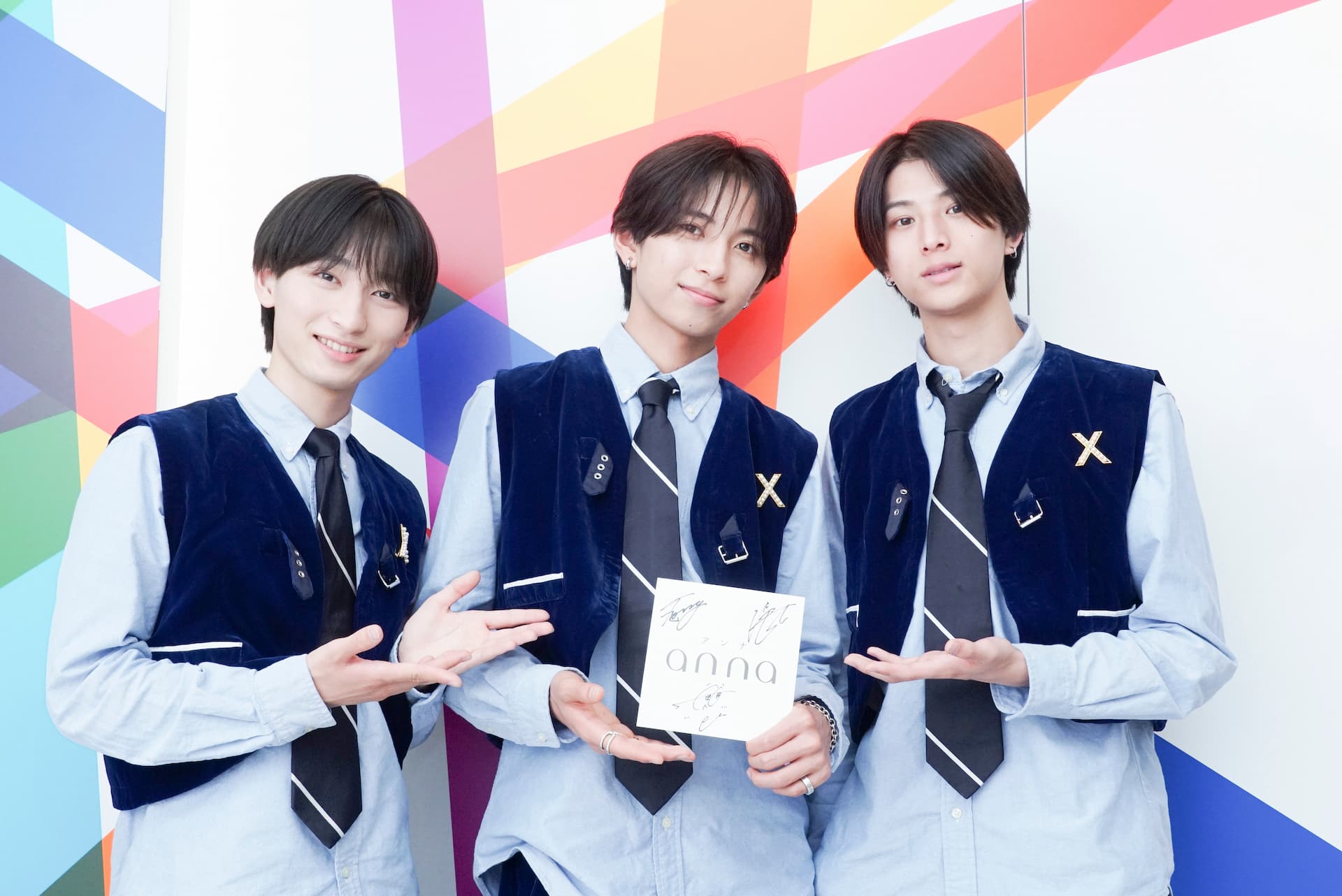 インタビューに来てくれた「ICEx」の3人は、なんと『インストール』の衣装姿! キラキラの3人がさらに輝いて見えました。クールさとかわいらしさのギャップが魅力の『インストール』、ロボットのように見えるようにがんばったというピシッとそろった振り付けもお見逃しなく♡