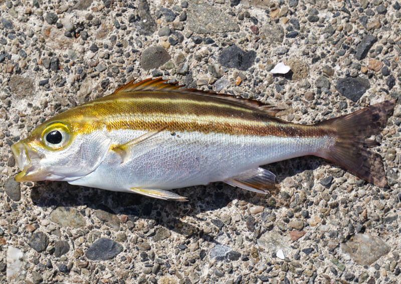 イノシシのような縦帯があるイサキの幼魚「うりぼう」