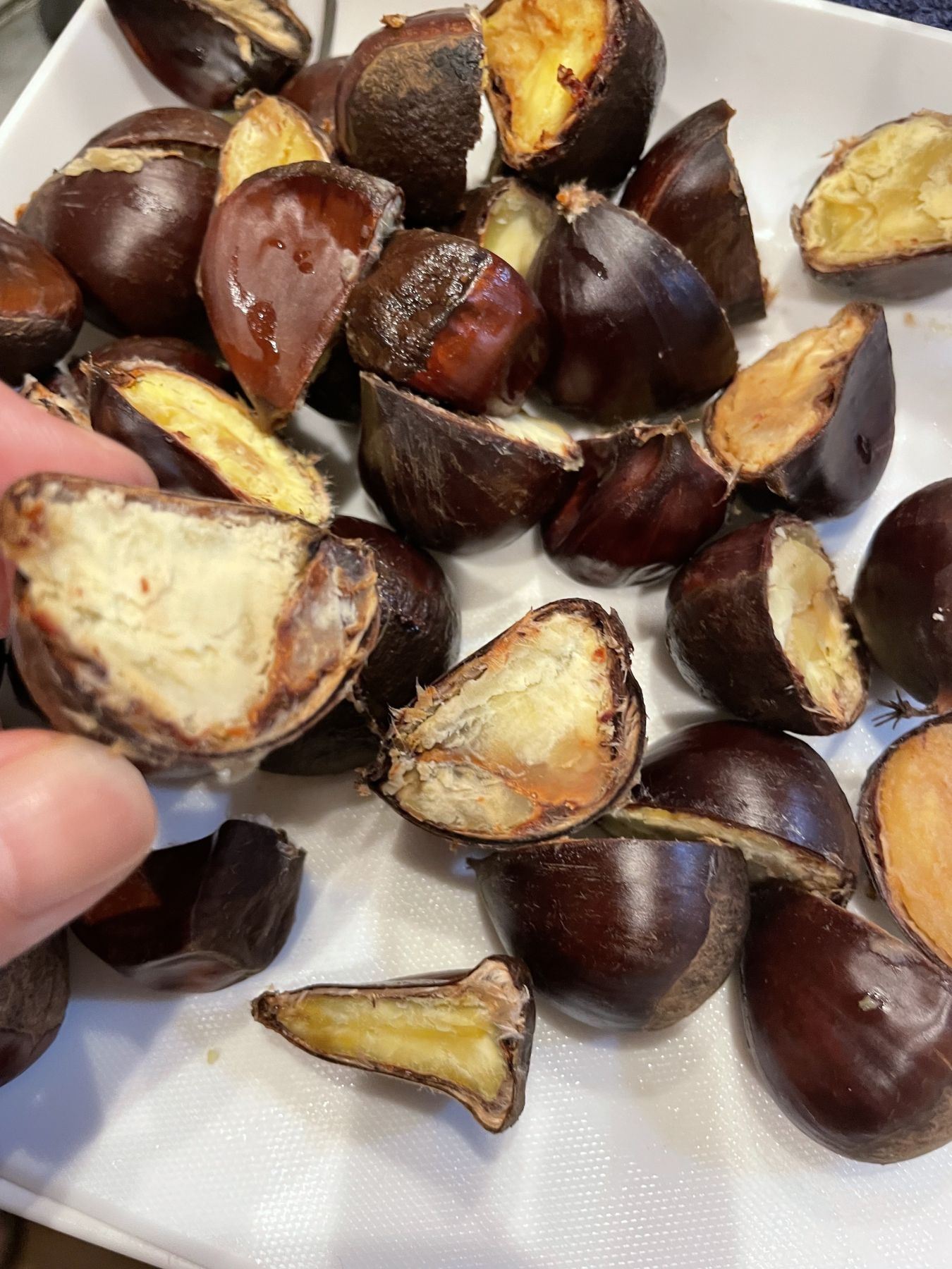 前日に試しに栗を小鍋で茹でたが、水がすくなかったからか、パサついてしまった。榎本さんの「たっぷり」をスルーした自分に反省。