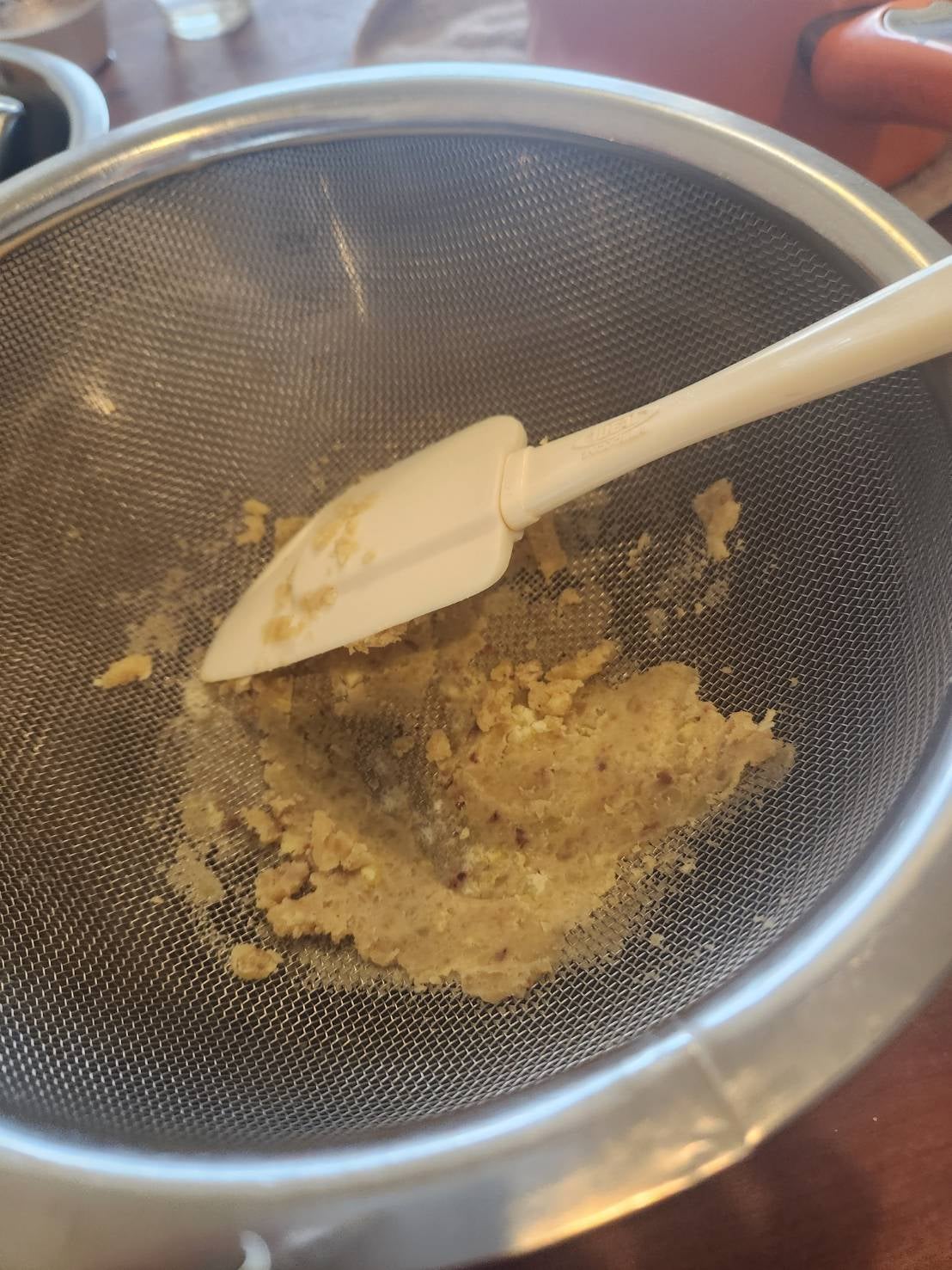 こちらはブレンダーは使わずにフォークの背でざっとつぶしてから、ザルで濾しました