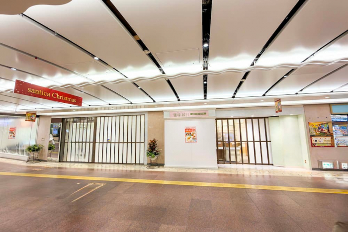 正面には『ミスタードーナツ』や『ゴディバ』があり、特に通勤時間帯は人の流れが絶えない通路沿い。買い物の合間や仕事帰りにも、気軽に立ち寄れる立地です。