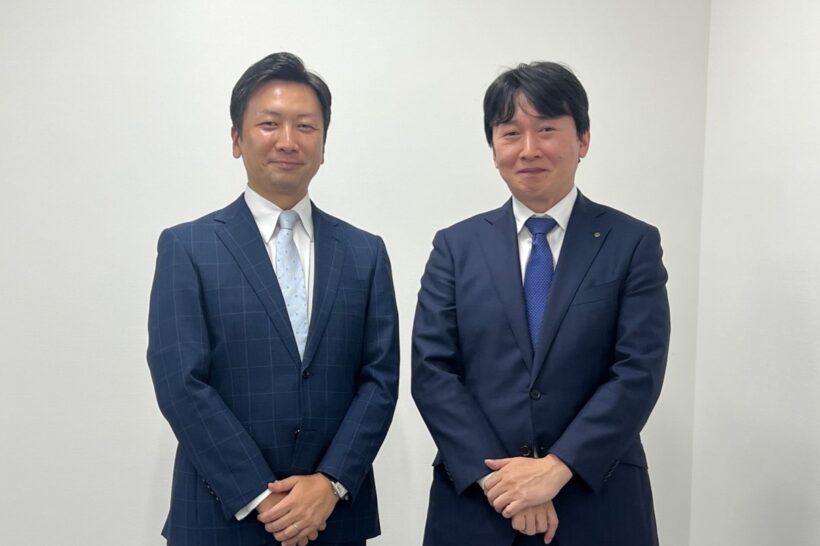 アイセックの木村大地CEO(左)と、村尾技建の村尾治祐代表取締役社長(右)