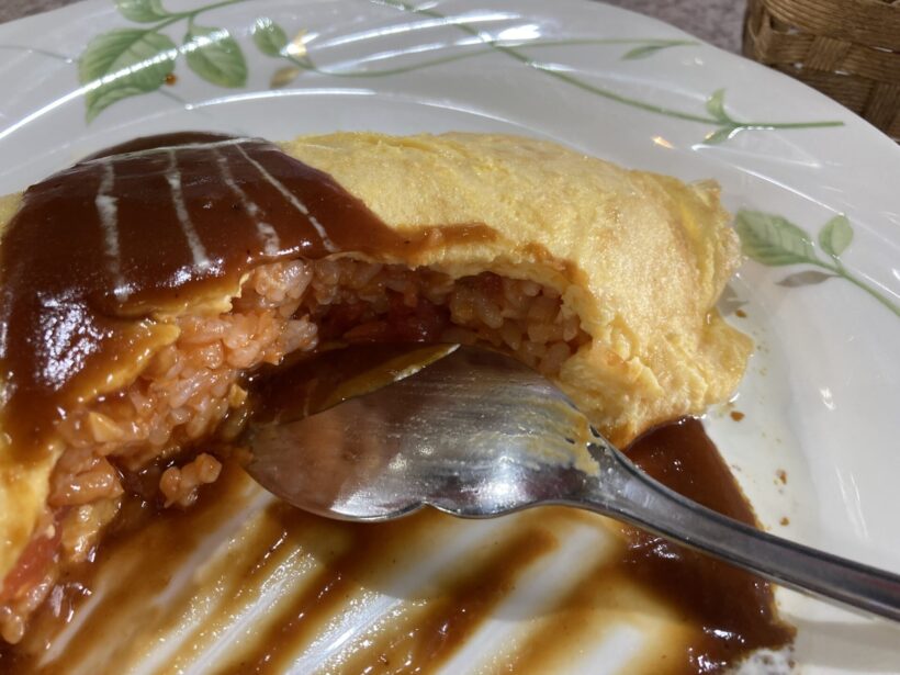 オムレツはクリーミーで、口の中でとろける。ミルクがたっぷり入っている感じだ。そして、ケチャップライスとデミグラスソースを合わせて味わう。まるでこの世の幸せのような美味しさ。