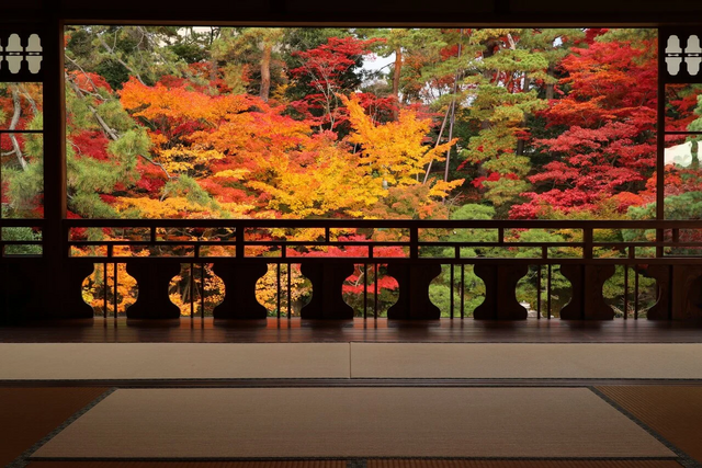 秋になると松林とモミジにより、庭園が赤、緑、黄色に染め上げられます!