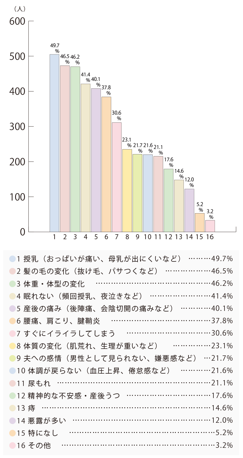 「授乳の悩み」はほぼ半数 「産後の痛み」は約4割に