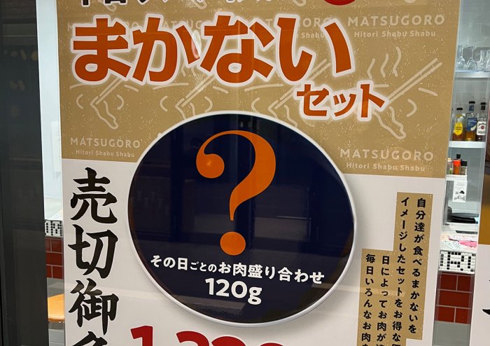新宿・歌舞伎町のトー横のすぐそば。正確に言うと、新宿東宝ビルに入っている「ひとりしゃぶしゃぶ 七代目 松五郎」の前で、『?』マークのメニューを発見した。