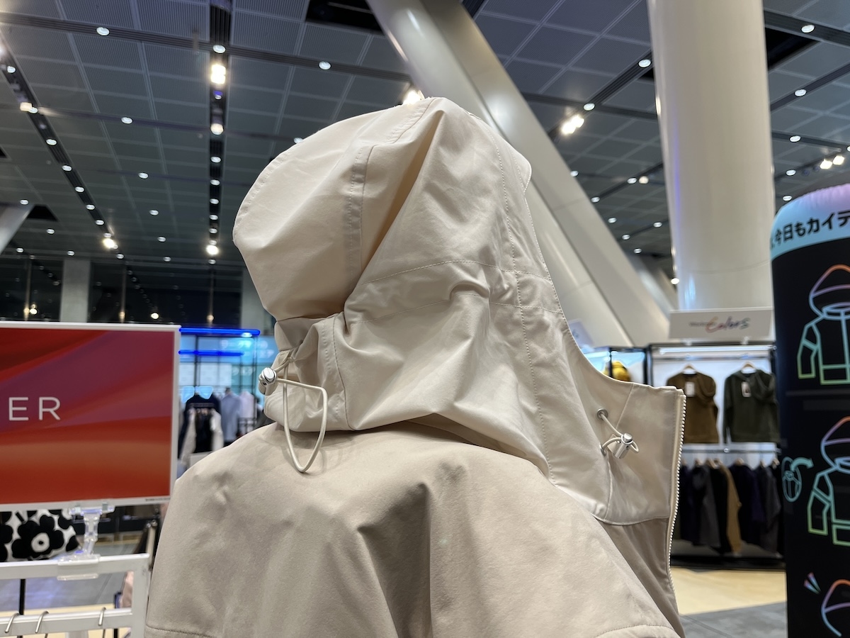 「撥水ペアマウンテンパーカー」は、普段の生活でも活躍します。フードにはサイズを調整できる機能があるため、風が吹いているときには絞ってサイズを小さくすれば、フードを頭に固定できます。フードが気になって下を向いてしまうと、安全確認がしにくくなりますから、このような機能があると安心ではないでしょうか。
