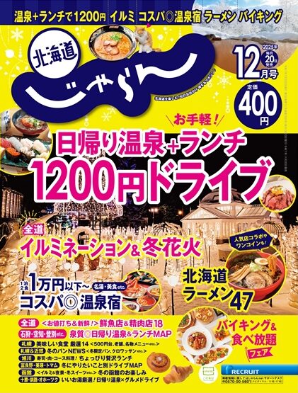 リクルートが発行する旅行情報誌『北海道じゃらん』。2025年12月号では、年末に向けて出費がかさむこの時期、「旅行はしたいけれど費用は抑えたい」というニーズに応え、「1泊2食付き1万円以下」で楽しめる高コスパな宿泊施設を特集しています。本記事では、その内容を少しだけご紹介。今冬の北海道旅行の参考にいかがでしょうか?