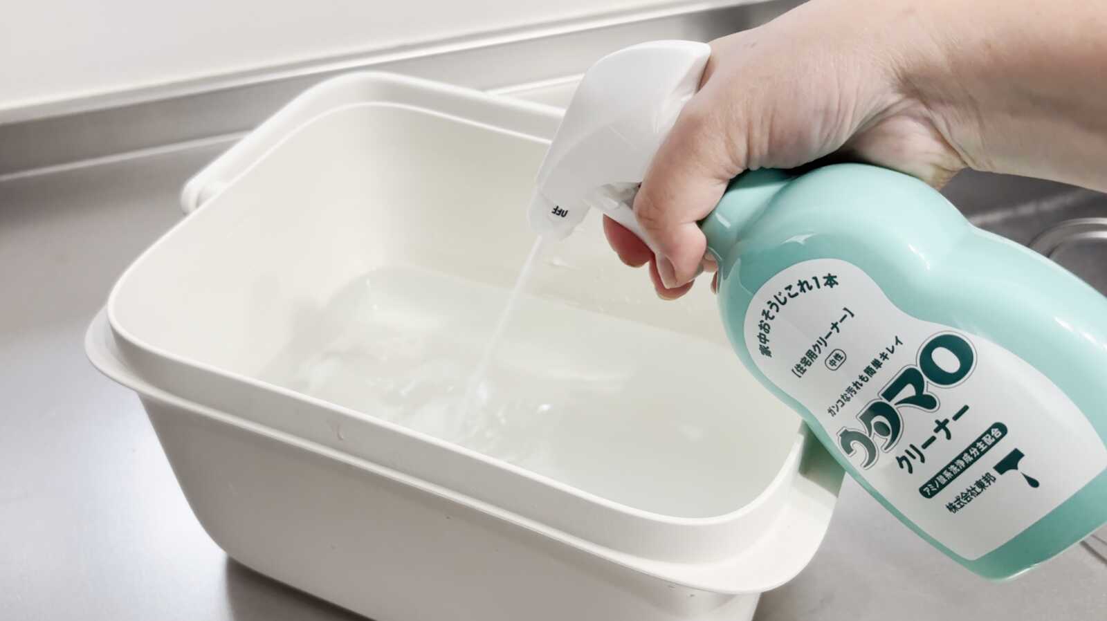 ※ウタマロクリーナーは本来スプレー式で原液使用が基本ですが、床拭き用に希釈する場合は、少量から始めて効果を確認しながら調整してください。水2Lに対して2〜3プッシュを目安に、汚れの程度に応じて濃度を調整しましょう。