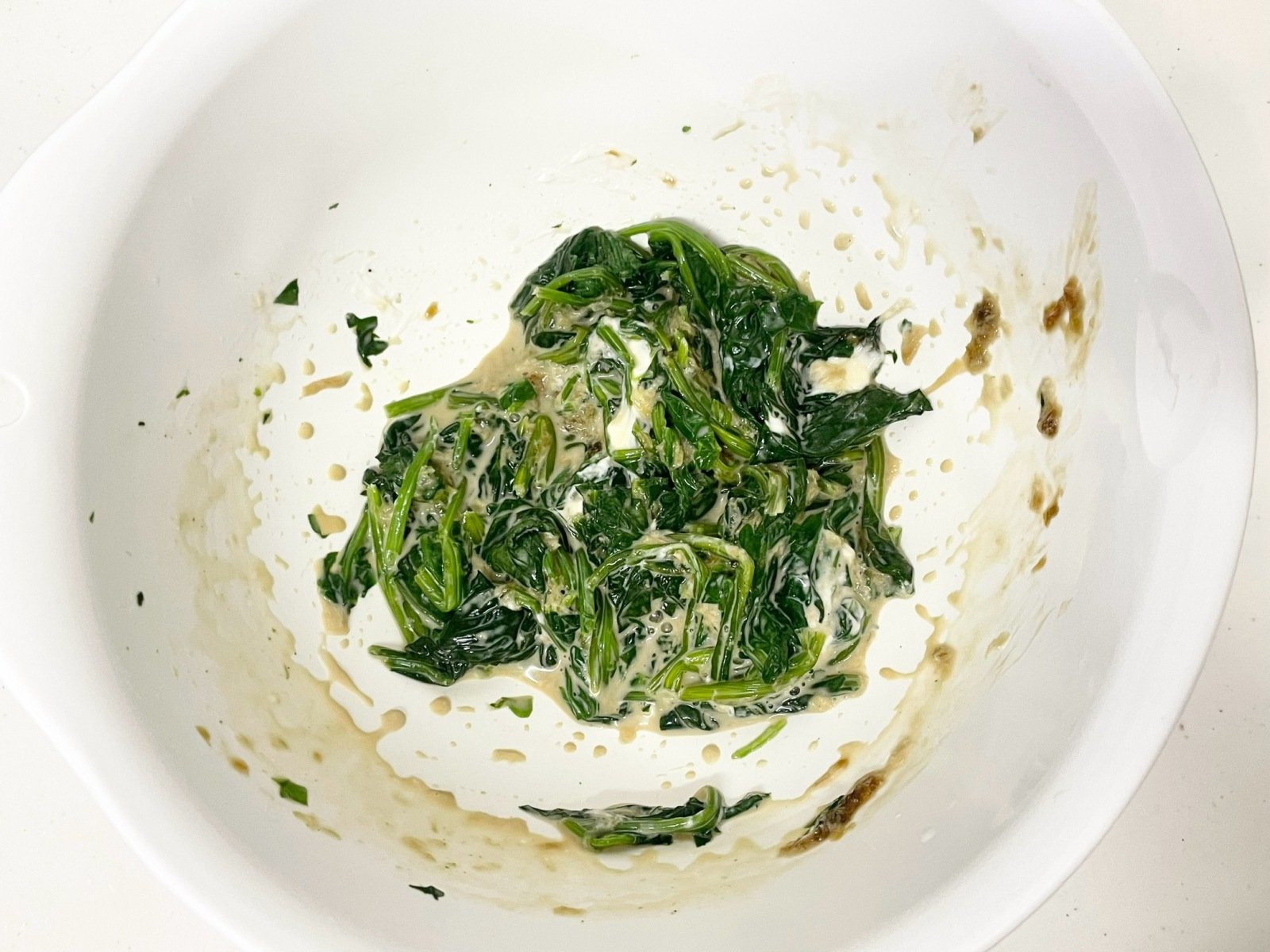 ※ほうれん草にはシュウ酸が含まれているため、気になる方はほうれん草を加熱後1~2分水に漬けてから絞り、調味料を加えてください。