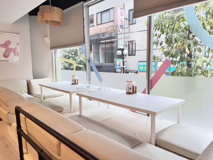 そして窓際には小上がりのソファー席もあり、靴を脱いでリラックスできる空間も。ひとりランチはもちろん、女子会や友人との食事にもぴったりで、ゆったりと本格韓国料理を楽しめます。