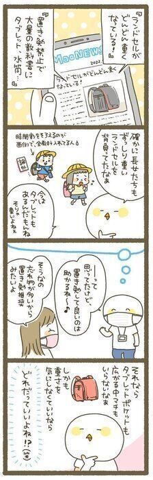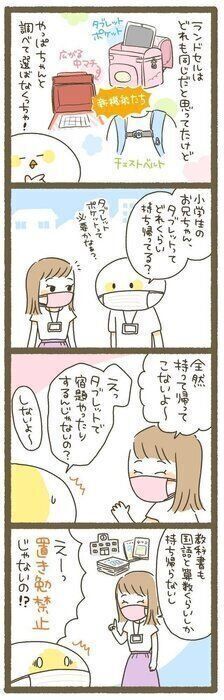 つい最近もネットニュースで「教科書が年々分厚くなっている、置き勉禁止で毎日持ち運ばなければならない、今どきの子はさらに水筒やタブレットもあり大変」という記事を読んだばっかりだったので、置き勉推奨というのは嬉しい♪