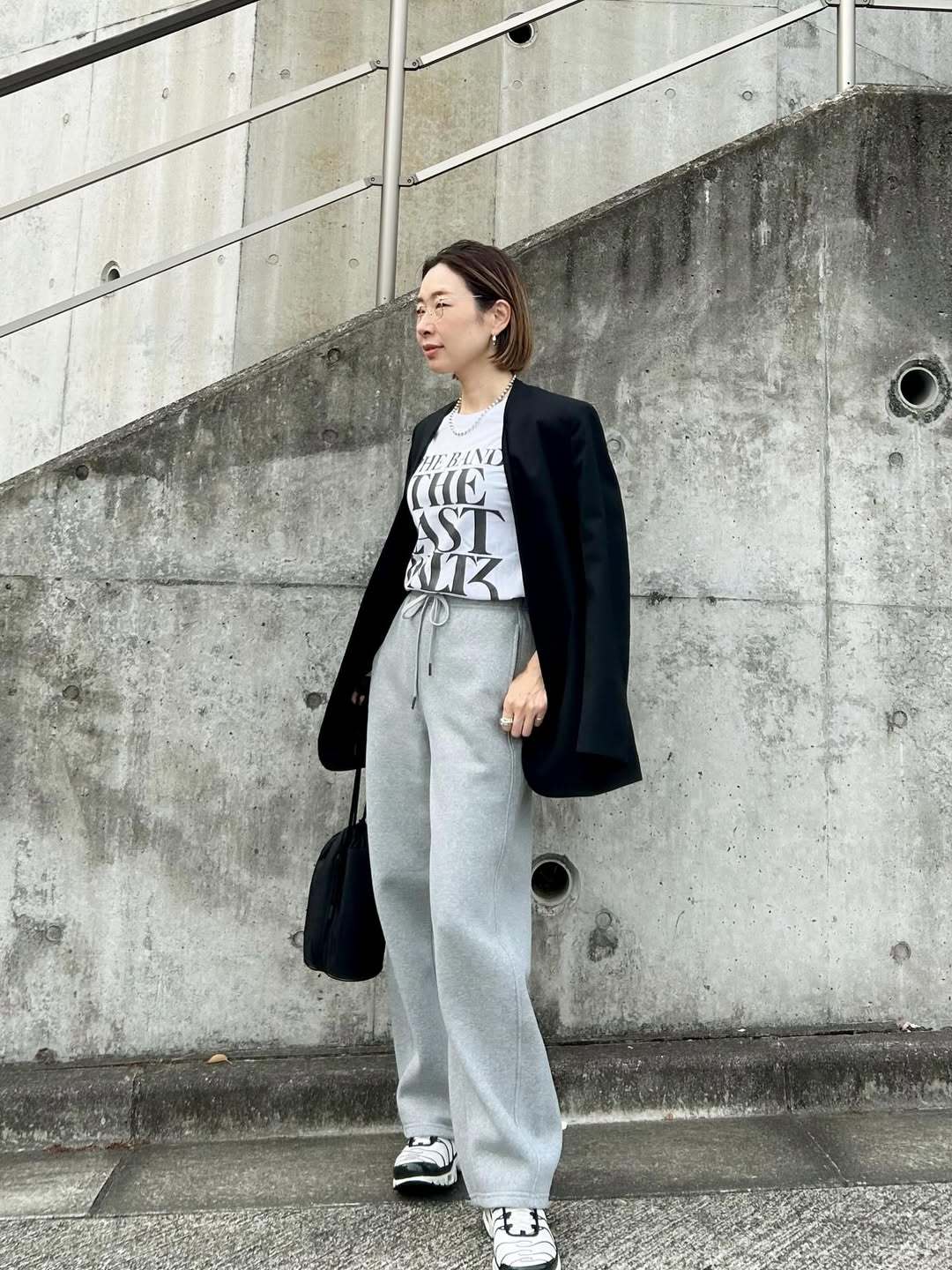 ジャケットをスエットパンツに合わせると、ほどよく力の抜けた旬のカジュアルスタイルが完成します。