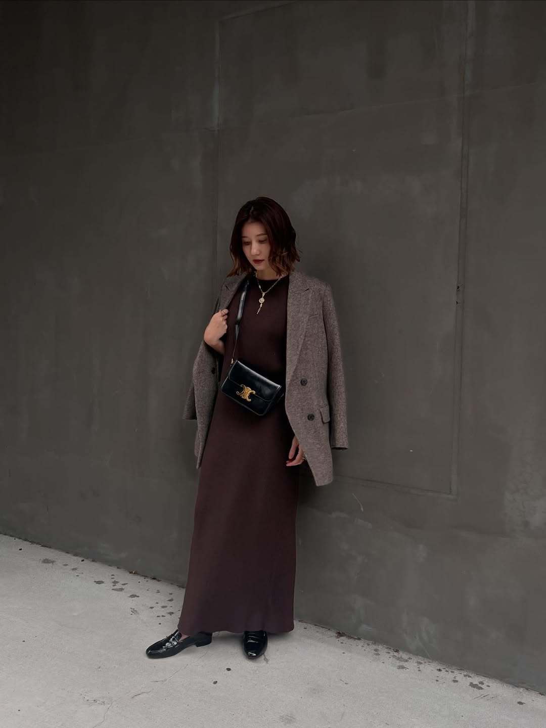 秋らしいブラウンのジャケットとインナーをワントーンでまとめるだけで、季節感と統一感がぐっとアップ!