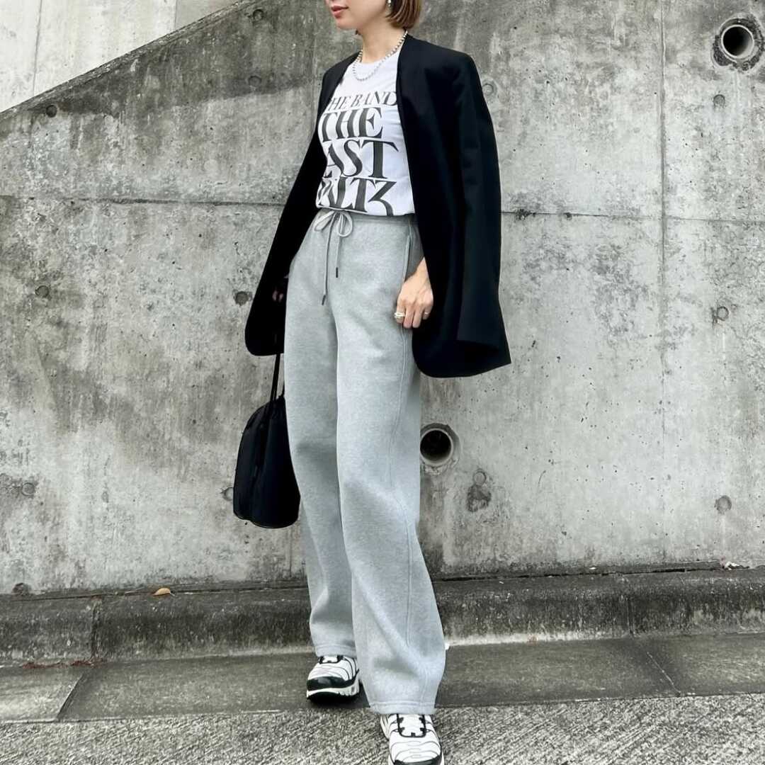 ポイントは、スエットパンツは太すぎないすっきりシルエットを選ぶこと。